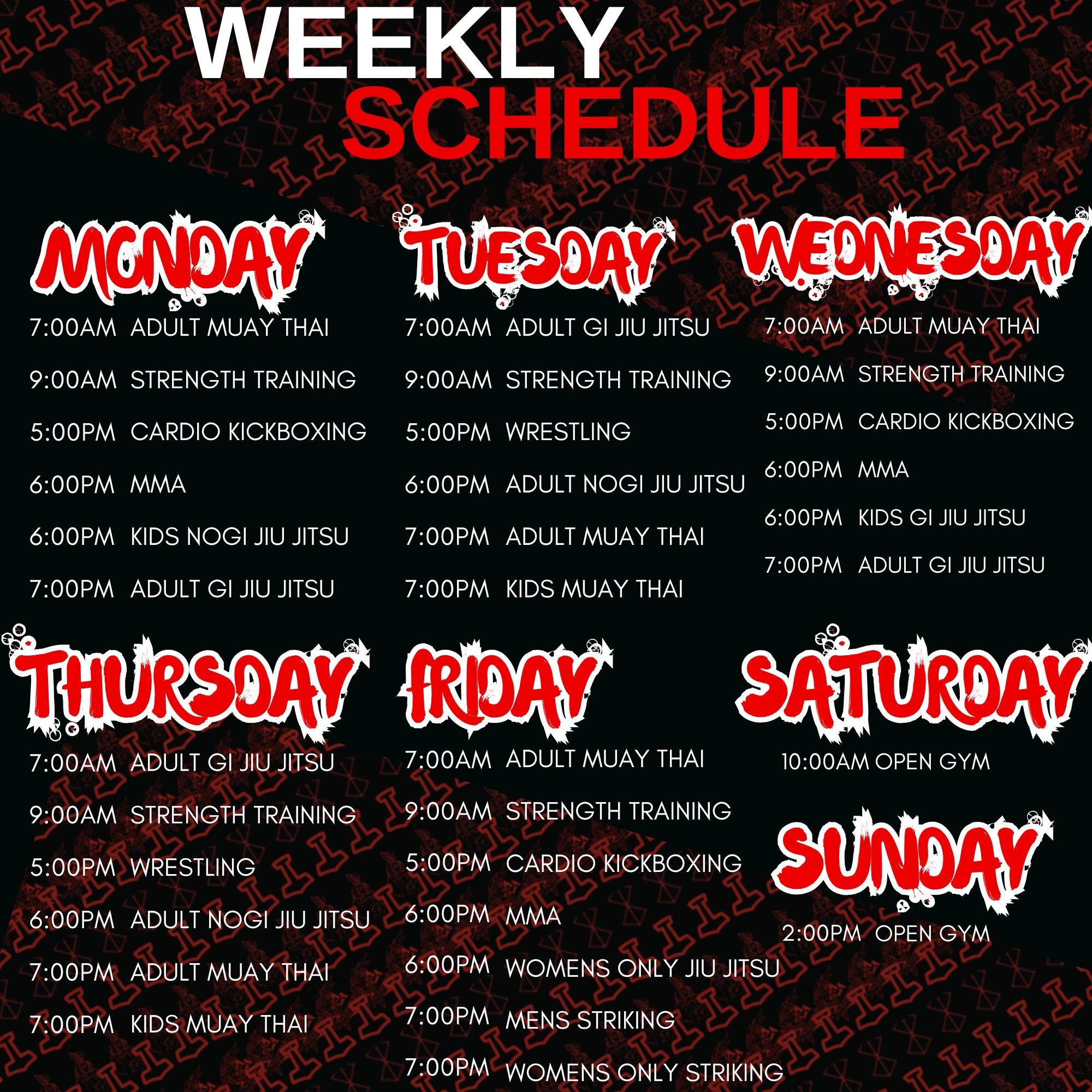 See a more detailed schedule by clicking below! https://ninerealmsmma.wodify.com/OnlineSalesPage/Main?q=Classes%7CLocationId%3D11401